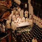 Homilię przygotowaną na uroczystość przez kard. Dominika Dukę odczytał bp Wiesław Szlachetka. Legat papieski zaznaczył w niej, że w długiej historii, poczynając od czasów apostolskich, Kościół nieraz zmagał się z ogromnymi trudnościami. - Zdawałoby się, że burze targają łodzią Piotrową, że lada moment utonie, a jednak okazywało się, że choć bez Chrystusa niczego naprawdę owocnego nie można uczynić, to prawdziwie trwając w Nim, można dokonać wielkich rzeczy. Moc Ewangelii zawsze okazuje się potężna. Trzeba jednak pamiętać, że Dobra Nowina, to nie jedynie zapisany tekst. Ewangelia to moc Ducha Świętego, która towarzyszy czytanemu i głoszonemu słowu, jeśli ona jest wiarą przywoływana - podkreślił.