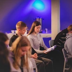 Po części konferencyjnej przyszedł czas na pracę w mniejszych grupach. Panele i warsztaty prowadzili młodzi liderzy: Alicja z wejherowskiej Concordii, Milena z gdyńskiej wspólnoty PanDa, Ala z rumskiej Armii Gedeona oraz gospodarze: Ania i Kuba z „Ciemnych Typów”. Pracowali z uczestnikami nad bardzo praktycznymi tematami: planowaniem roku formacji, budowaniem zespołu animatorów, mierzeniem się z kryzysami i spadkiem zaangażowania, szukaniem języka, który trafi do rówieśników.