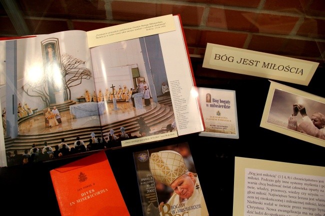 Na ekspozycji znajdują się zilustrowane fotografiami i publikacjami fragmenty wypowiedzi ojca świętego. Zdjęcia: Jan Hlebowicz /GN